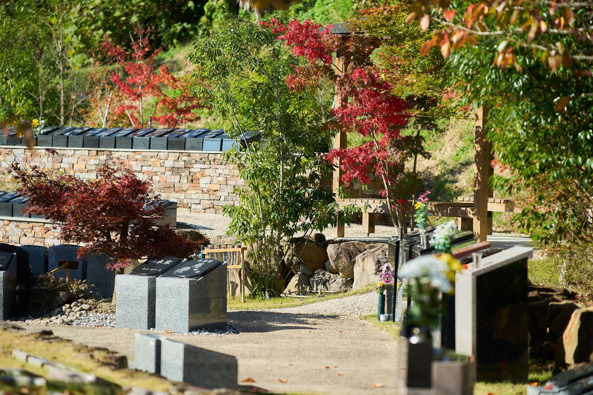 花壇型は里山型ほど自然寄りではなく、一般墓ほど重厚感もない中間的なスタイルです。「整えられた墓所でお参りしたいが、従来の墓石は重く感じる」という方に向いています。大型駐車場から墓域まで近く、通路も平坦なため、高齢の方もお参りしやすい環境です。